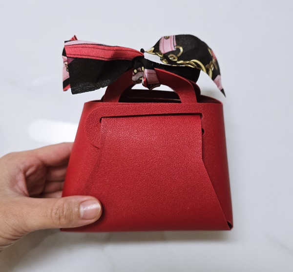 가방모양 안에 반지 케이스에 반지를 넣어주셨어요.