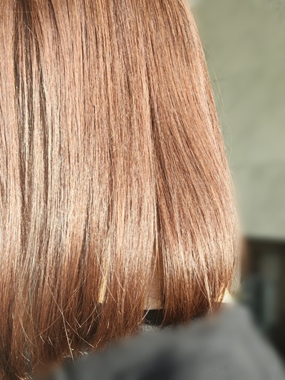 다음날 머리를 한번 더 감고 낮에 해가 있을 때 다시 봤는데 그전보다는 모발컬러가 전체적으로 밝아진 것 같기는 했어요. 저는 좀 더 밝은 컬러를 원했기 때문에 한번 더 염색을 하기로 했습니다.
