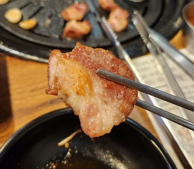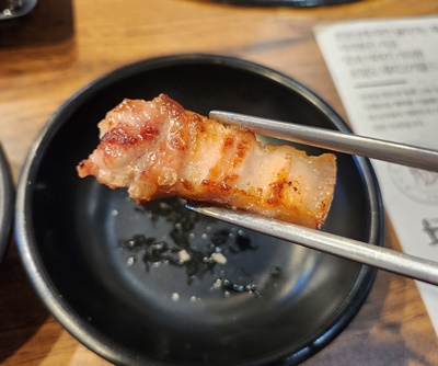 통 가브리살은 오겹살과 다른 식감으로 꼬들꼬들(?)하다고 해야 하나 씹는 식감도 좋았고, 좀 더 부드럽게 씹히는 느낌이었어요.